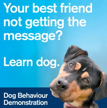 Learn to understand your dog’s behavior Ask the dog trainer questions and watch her work with a dog she has never met in front of everyone. Would you like to bring your dog?
